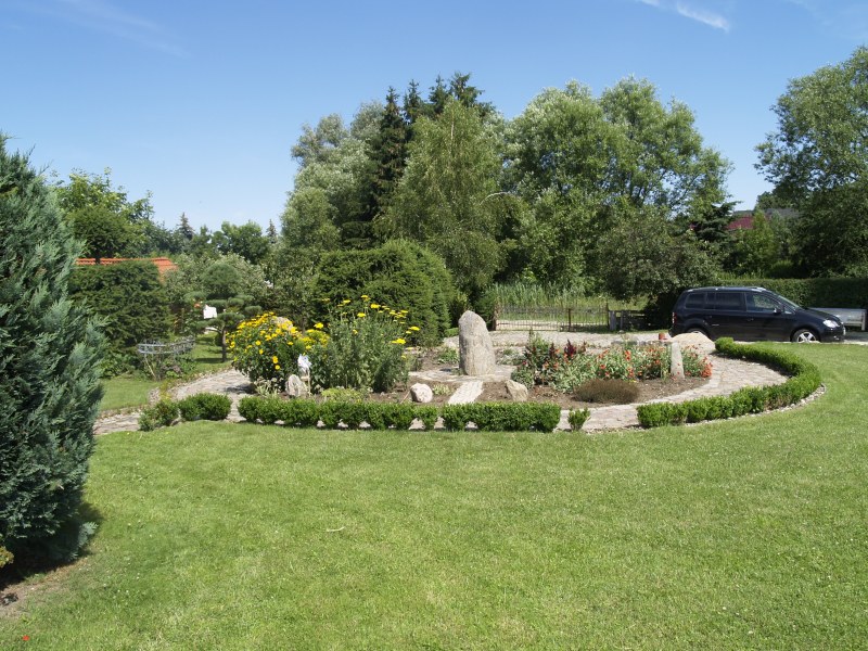 - großer Garten mit Rasen und Obstbäumen
